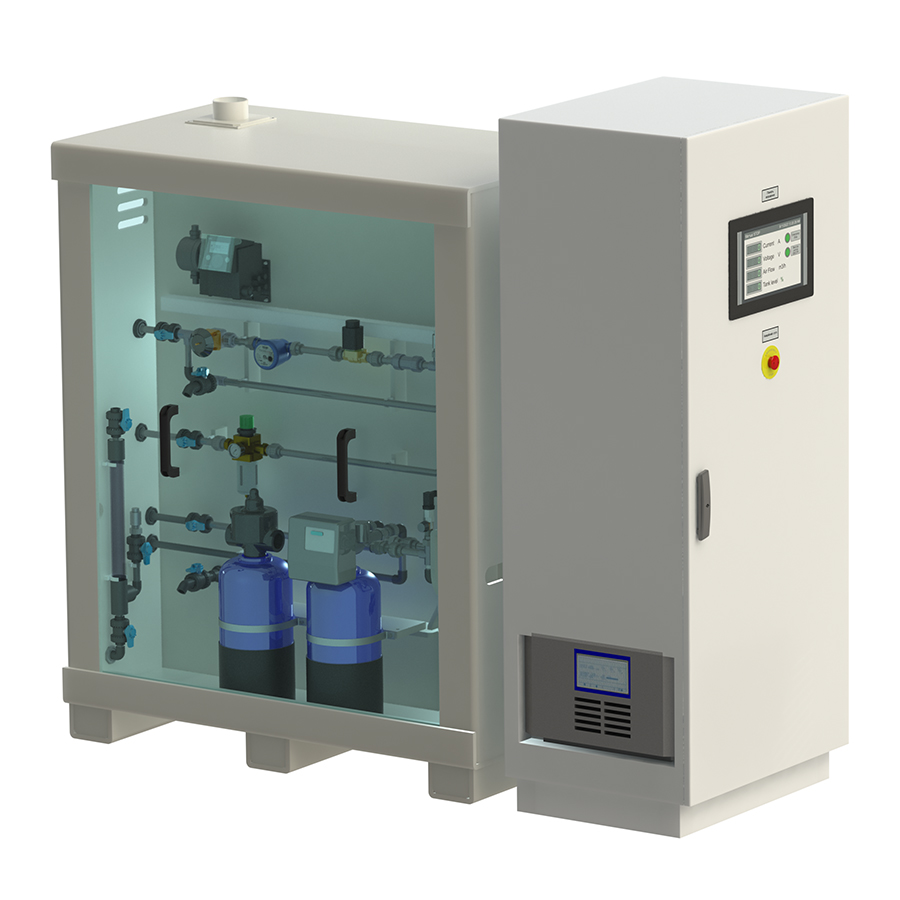 Електролізна станція виробництва гіпохлориту натрію — це сучасне обладнання для отримання гіпохлориту натрію (NaClO) безпосередньо на об’єкті шляхом електролізу водного розчину кухонної солі (NaCl).